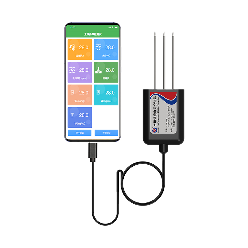 此產(chǎn)品為 USB 接口輸出,可直接和手機(jī)連接,由手機(jī)給土壤設(shè)備供電,同時(shí)搭配對(duì)應(yīng) 手機(jī) APP 可以實(shí)時(shí)查看土壤各個(gè)要素的數(shù)據(jù),土壤要素可在 APP 上自適應(yīng)體現(xiàn)。支持?jǐn)?shù)據(jù)導(dǎo)出,可將當(dāng)前的實(shí)時(shí)數(shù)據(jù)導(dǎo)出保存到手機(jī)本地。該傳感器適用于 節(jié)水灌溉、溫室大棚、花卉蔬菜、草地牧場(chǎng)、土壤速測(cè)、植物培養(yǎng)、污水處理、精細(xì)農(nóng)業(yè)等場(chǎng)合。