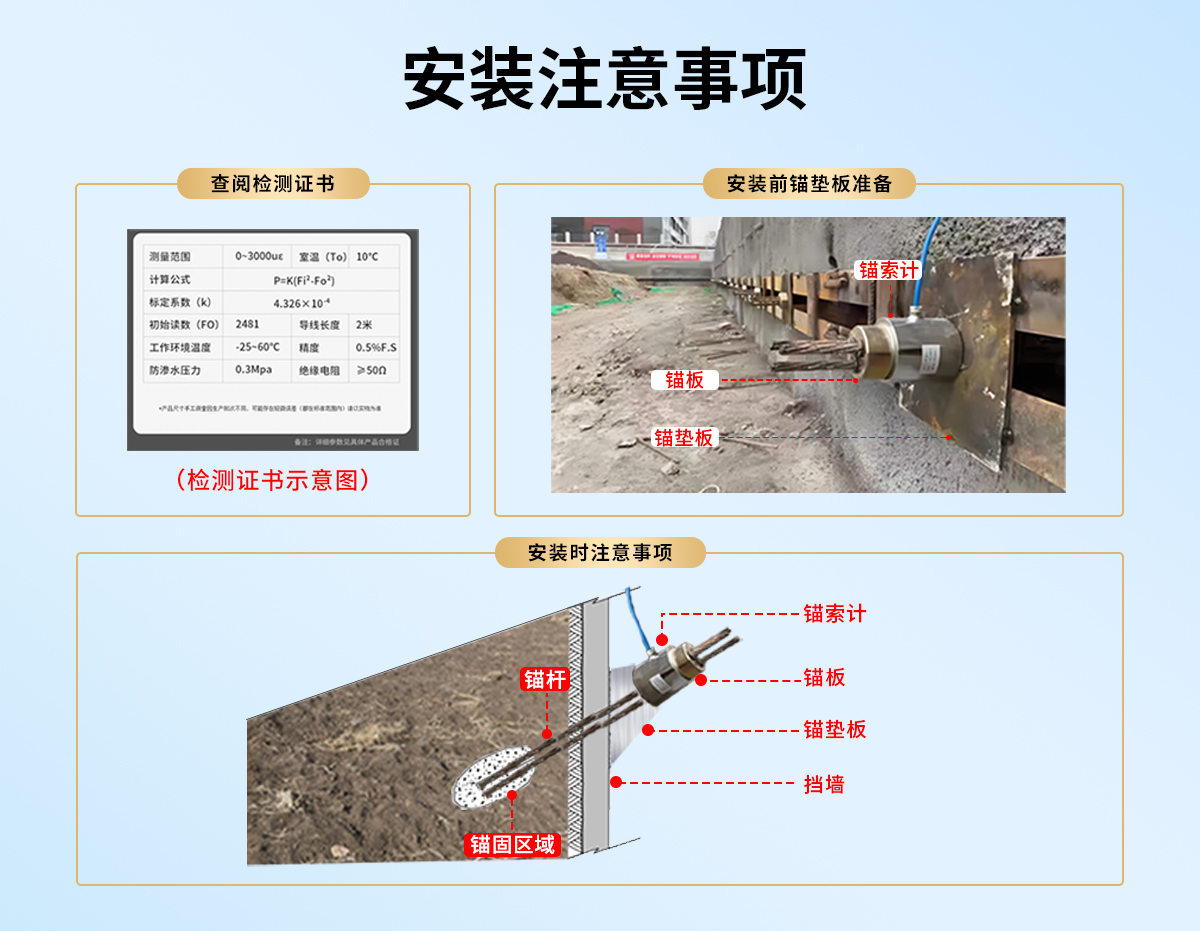 振弦式錨索計(壓力荷載盒、軸力計等)用于錨索、錨桿及其它重型荷載的監(jiān)測,包括混凝土壩、地下硐室、邊坡、基坑支護、橋梁及反力梁等荷載的實時在線監(jiān)測。加裝溫度傳感器即可同步測量安裝點的溫度。搭配我公司振弦式傳感器采集器可實現(xiàn)對現(xiàn)場傳感器實時數(shù)據(jù)進行采集并轉(zhuǎn)換485、4G、NB-IoT、LoRa等數(shù)據(jù)傳輸方式上傳。