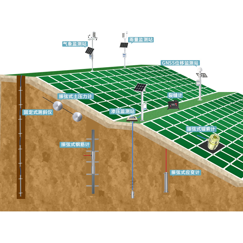 邊坡安全監(jiān)測系統(tǒng)依據(jù)國標(biāo)要求,對(duì)邊坡的“變形位移、支護(hù)結(jié)構(gòu)受力情況、水文氣象、地下水”進(jìn)行全方位、高精度的實(shí)時(shí)在線監(jiān)測。同時(shí),我司免費(fèi)提供的監(jiān)測預(yù)警平臺(tái),賦予邊坡安全監(jiān)測系統(tǒng)全天候的守護(hù)能力以及智能預(yù)警機(jī)制,為邊坡的安全管理提供了堅(jiān)實(shí)的保障。