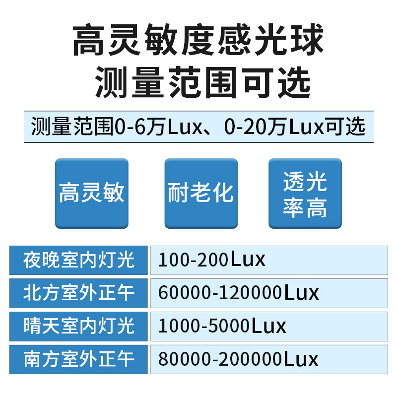 光照強度量程 | 0-65535Lux;0-20萬Lux |